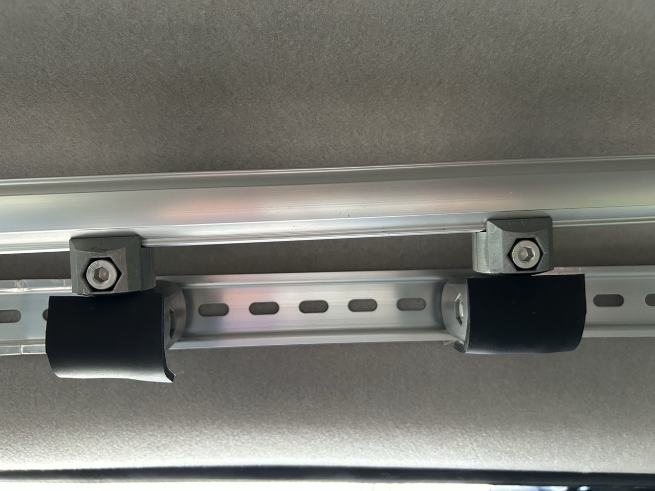 仕事でよく目にしていたDINレールを曲げて渡すことで、サイドバーの代用としてみます。