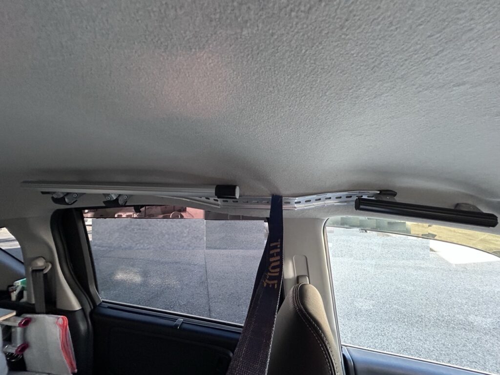 フロントシートとセカンドシートのグラブレール間に、サイドバーを付けられないか検討しましたが、Bピラーの出っ張りがじゃまなのと、グラブレールの位置が直線になっていないので、なかなかいい方法が見つかりませんでした。