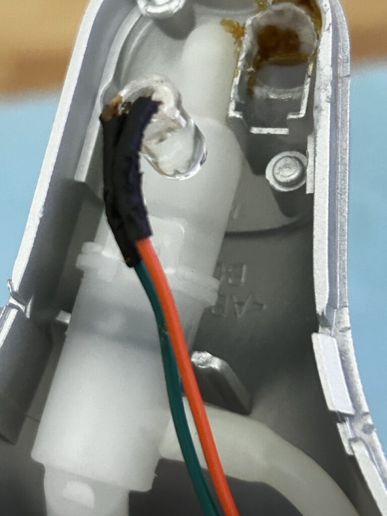 しかたないので、くちばし部分のLEDを外し、基板をスッポリ抜いて洗いました。